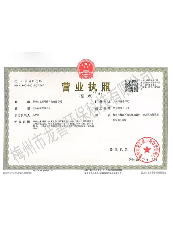梅州市龍善環(huán)保科技有限公司為龍善環(huán)保股份有限公司(簡(jiǎn)稱(chēng)“龍善環(huán)保”)子公司。龍善環(huán)保于1995年12月成立,注冊(cè)資本為人民幣6,000萬(wàn)元,總部位于深圳市南山區(qū)月亮灣大道2078號(hào)兆龍大樓16層。公司經(jīng)生態(tài)環(huán)境部、廣東省生態(tài)環(huán)境廳、深圳市生態(tài)環(huán)境局、深圳市交通運(yùn)輸委員會(huì)、深圳海事局等部門(mén)許可專(zhuān)業(yè)從事陸地和海洋環(huán)境保護(hù)產(chǎn)業(yè)的高科技民營(yíng)企業(yè),主要經(jīng)營(yíng)業(yè)務(wù)包括工業(yè)廢物收運(yùn)、資源化利用和無(wú)害化處理處置、海洋船舶污油水接收和集中處理處置、突發(fā)環(huán)境事故清污應(yīng)急處置等......